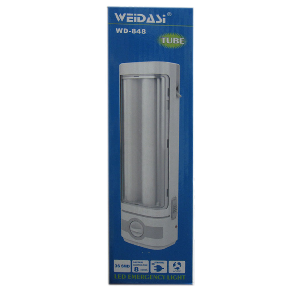 چراغ اضطراری ولوم دار ویداسی مدل WD-848 دارای 36 عدد چراغ اس ام دی می باشد که نور خوبی را به نمایش میگذارد این چراغ دارای یک ولوم تنظیم کننده میزن روشنایی دارد که علاوه بر ولوم شما میتوانید از یکی از لامپ ها یا از هر دو لامپ استفاده کنیدچراغ اضطراری ویداسی دارای دسته نگهدارنده می باشد و حدود 8 ساعت روشنایی دارد